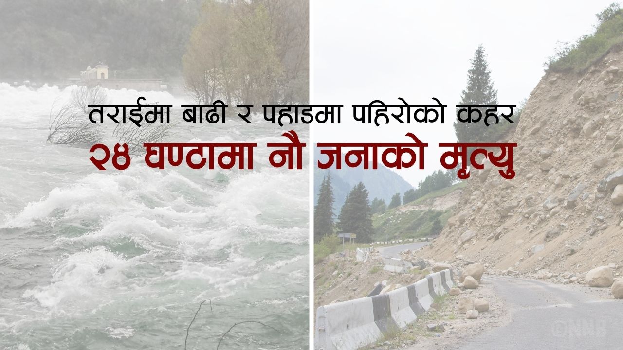 काठमाडौं । अविरल वर्षासँगै तराईमा बाढी र पहाडमा पहिरोको कहर सुरु भएको छ । बाढि र पहिरोको कारण वितेको २४ घण्टामा मात्र सयौं जना विस्थापित भएका छन् भने नौ जनाको मृत्यु् भएको छ ।