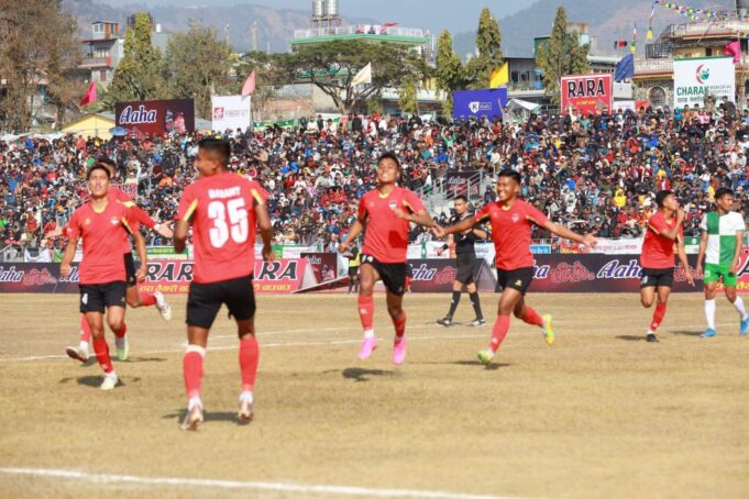 काठमाडौँ । पोखरामा सम्पन्न आहा रारा पोखरा गोल्ड कपको उपाधि विभागीय टिम त्रिभुवन आर्मीले उचालेको छ । शनिवार पोखरा रङ्गशालामा भएको फाइनलमा पाँच पटकको विजेता थ्रिस्टार क्लबलाई ३-० गोलअन्तरले हराउँदै पहिलो पटक उपाधि जितेको हो । आर्मीका लागि पहिलो गोल क्याप्टेन गिलेस्पी जंग कार्कीले ३८ मिनेटमा गरेका थिए । दोस्रो गोल आर्मीका फत्तेमान घलेले ८३ मिनेट र वसन्त जिम्बाले इन्जुरी समयमा गोल थपे । आर्मी यसअघि ४ पटक फाइनल पुगे पनि उपाधि विहीन थियो । २०६५, ०६६, ०७२ र ०७५ मा फाइनल पुगेको थियो । थ्रिस्टारले २०६३, ०६७, ०६९, ०७१ र ०७५ मा उपाधि जितेको थियो । शनिवारको खेलमा आर्मीले ५ वर्षअघिको बदला फर्कायो ।