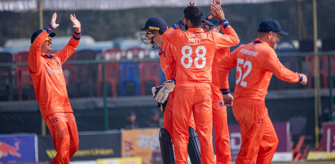 त्यस्तै, रुबेन ट्रम्पलम्यानले ३९ बलमा २० रन बनाए । उनले एक छक्का प्रहार गरे । विकेटकिपर जेन ग्रिनले १९ रन बनाउँदा निकोलास डेभिन र कप्तान जेरहार्ड इरास्मसले १३–१३ रनको योगदान दिए । नेदरल्यान्ड्सका लागि कायल क्लेइनले २ तथा म्याक्स ओ डाओड र रोलोफ भान डर भर्वेले १–१ विकेट लिए । त्रिकोणात्मक शृङ्खलाको पहिलो खेलमा नेपाल नामिबियासँग ४ विकेटले पराजित गरेको थियो । दोस्रो खेलमा नेपालले नेदरल्यान्ड्सलाई ९ विकेटले हराएको थियो ।