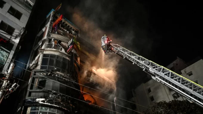 ढाका । ढाकाको एउटा बहुतले भवनमा आगलागी हुँदा कम्तीमा ४३ जनाको मृत्यु भएको छ । स्थानीय सञ्चारमाध्यमका अनुसार राजधानी ढाकाको एक रेस्टुरेन्टमा बिहीबार राति १० बजे आगलागी भएको थियो । आगो पूरै भवनमा फैलिएको अनि दर्जनौँ मानिस यसमा फसेको बताइएको छ ।