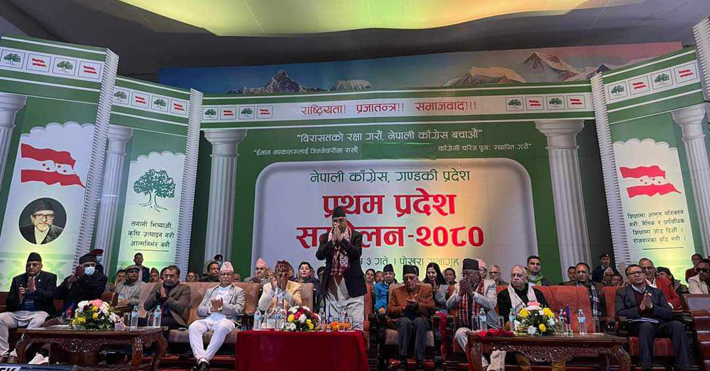 काठमाडौँ । नेपाली कांग्रेस गण्डकी प्रदेश समितिको प्रथम सम्मेलनको बैठक सुरु भएको छ ।कांग्रेसका केन्द्रीय सभापति एवं पूर्वप्रधानमन्त्री शेरबहादुर देउवाले उद्घाटन गरी बैठक सुरु भएको हो ।सम्मेलनमा सभापति देउवासहित पार्टी केन्द्रीय समितिका पदाधिकारीसमेत उपस्थित छ ।