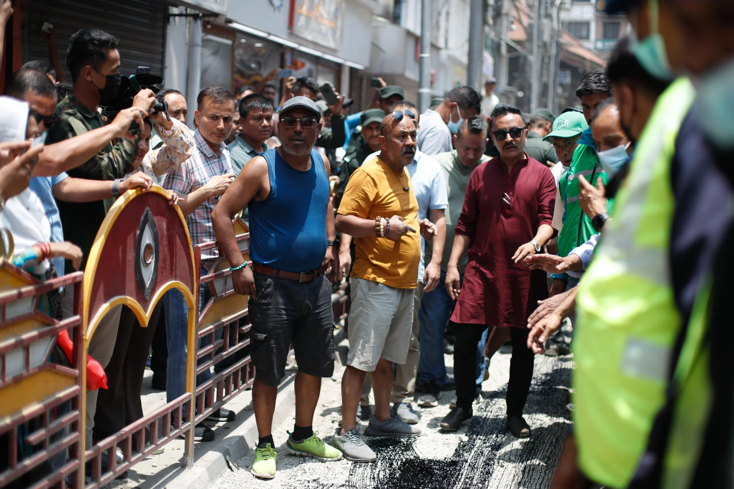 सडक विभागले सोमबार बिहान सडक पिच लागेपछि काठमाडौँ महानगरको प्रहरीले अवरोध गरेको छ । विवाद मिलाउन अहिले नगर प्रहरी र सडक विभागका अधिकारीहरूबिच न्युरोडमा छलफल भइरहेको छ ।