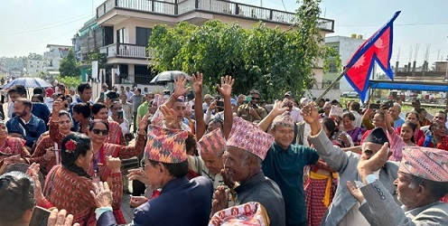 काठमाडौं । झापा- पूर्वराजा ज्ञानेन्द्र शाहको स्वागतमा बिर्तामाेडमा सर्वसाधारणकाे भीड लागेकाे छ। नाचगानसहित सर्वसाधारण उपस्थित भएका छन्।राष्ट्रनिर्माता पृथ्वीनारायण शाहको सालिक अनावरण कार्यक्रममा सहभागी बन्न पूर्व राजा शाह शुक्रबार अपराह्न झापा आइपुगेका हुन्। उनकाे स्वागतका लागि सर्वसाधारणहरू निकै प्रफुल्लित छन्।पूर्व राजा आएका बखत शनिबार राष्ट्रिय प्रजातन्त्र पार्टी (राप्रपा) ले शनिबार शक्ति प्रदर्शन गर्दैछ।