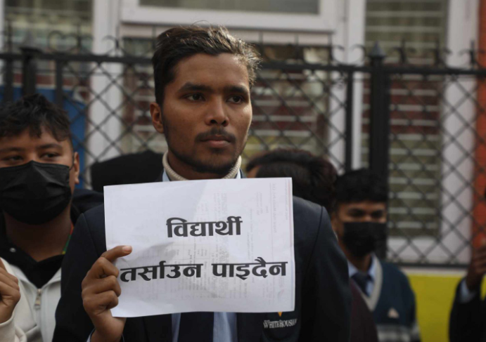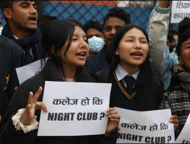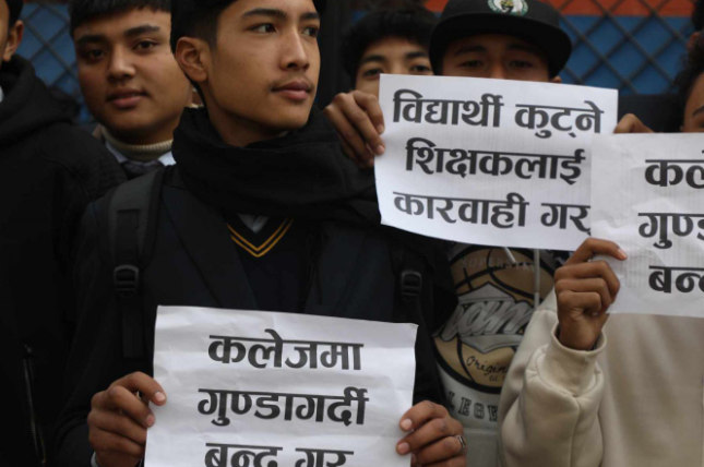 काठमाडौं- तीनकुनेस्थित हिमालय ह्वाइट हाउस इन्टरनेश्नल कलेजका डिआइले विद्यालयका छात्रा विद्यार्थीमाथि ‘मिस बिहेब’ गरेको भन्दै विद्यार्थीहरू आन्दोलित भएका छन् ।विद्यालयमा रहेका छ जना डिआइले विद्यार्थीलाई विभिन्न बहानामा कुटपिट गरिरहने गरेको र मंगलबार एक जना डिआइले छात्रामाथि ‘मिस बिहेब’ गरेको भन्दै विद्यार्थीहरू आन्दोलनमा उत्रिएका हुन् ।