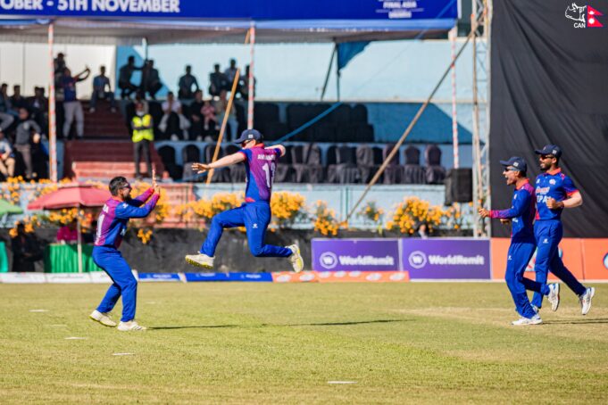 आइसिसी टी– २० विश्वकप एसिया क्षेत्रको फाइनल छनोटअन्तर्गत त्रिवि क्रिकेट मैदानमा जारी ओमानविरुद्धको खेलमा नेपालले खेल सुरु भएको आधा घन्टा भित्रमा नै दुई बिकेट लिन सफल भएको हो ।