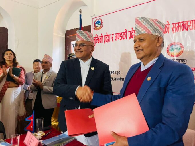 लुम्बिनी प्रदेश सरकारले गण्डकी प्रदेशका मुख्यमन्त्री सुरेन्द्रराज पाण्डेको विशेष उपस्थितिमा पाल्पाको रानी महलमा आयोजना गरेको अन्तर प्रदेश समन्वय बैठकलाई आज सम्बोधन गर्दै मुख्यमन्त्री आचार्यले आपसी समन्वय र सहकार्यबाट प्रभावकारी काम गर्न सकिने बताए ।