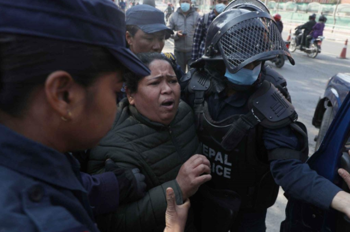 काठमाडौँ । न्यायाधीश भुवन गिरीकी श्रीमती आरती गिरी रावललाई प्रहरीले सर्वोच्च अदालतकाे गेट अगाडिबाट पक्राउ गरेको छ।सोमबार बेलुकादेखि अनसन बसेको बताउने उनलाई ‘आन्दोलन गर्दिनँ र न्याय माग्छु’ भन्दाभन्दै प्रहरीले पक्राउ गरेको हो।हिजो साँझदेखि शान्तिबाटिकामा अनसन बसेकी उनलाई प्रहरीले आज बिहान सर्वोच्चको गेटमा पुग्नासाथ पक्राउ गरेको हो।