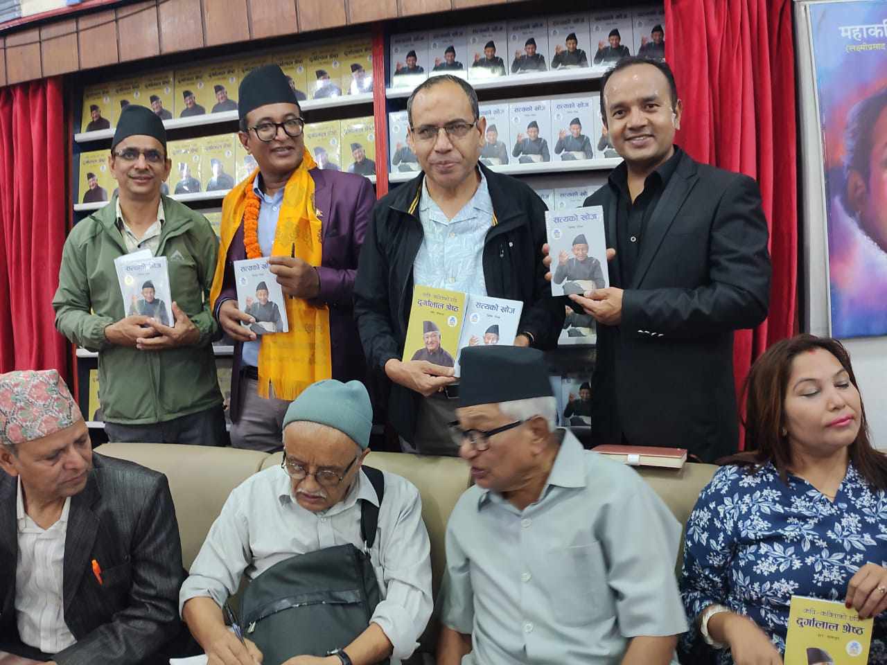 काठमाडौं – साहित्यकार जितेन्द्र रसिकद्वारा लिखित वाङ्मय शताब्दी पुरूष सत्यमाेहन जाेशीकाे जीवनी ‘सत्यकाे खाेज’, सार्वजनिक भएकाे छ । शुक्रबार जनकवि दुर्गालाल श्रेष्ठले कृति लाेकार्पण गर्नु भएकाे हाे । शुक्रबार एजुकेस्नल पब्लिसिङ हाउस कान्तिपथमा आयाेजित कार्यक्रममा लेखक रसिकले वाङ्मय शताब्दी पुरूष सत्यमाेहन जाेशीकाे बारे जति लेखे पनि कहिल्यै नसकिने बताउनु भयाे । जाेशी नेपाली लाेक साहित्य र संस्कृतिमा याे युगकै एउटा ननिभ्ने ज्याेति भएकाे बताउनु भयाे । रसिककाे याे १५ ओैं कृति हाे । सत्यकाे खाेज कृतिकाे समीक्षा गर्दै समिक्षक गाेपी कृष्ण ढुंगानाले सत्यकाे खाेज वाङ्मय शताब्दीपुरूष सत्यमाेहन जाेशीकाे गहिराईमा पसेर लेखिएकाे महत्वपूर्ण दस्तावेज भएकाे बताउनु भयाे । उहाँले सत्यकाे खाेजकाे हरेक च्याप्टर एक गहिराे अनुसन्धानमुलक कृति भएकाे बताउनु भयाे । वाङ्मयपुरूष जाेशी पुत्र अणुराज जाेशीले सत्यकाे खाेज भित्र सत्यमाेहन जाेशीकाे ईति वृतान्त समावेश रहेकाे र लेखक रसिककाे लेखन शैली आकर्षक भएकाले पाठकले कृति रूचाउने बताउनु भयाे कार्यक्रममा आर मानन्धरद्वारा लिखित जनकवि दुर्गालाल श्रेष्ठकाे जीवनी ‘कवि-कविताकाे छवि दुर्गालाल श्रेष्ठ’ र कमल प्रसाद मल्लकाे ‘क्लासिकल नेवार लिट्रेचर’ पनि एकसाथ लाेकार्पण भएकाे छ। लेखक आर मानन्धरले जनकवि दुर्गालाल श्रेष्ठले नेपाल भाषा आन्दाेलनमा साहित्य, गीत, नाटकबाट जनताका लागि चेतना जगाउन पुर्याउनु भएकाे याेगदानकाे चर्चा गर्नु भयाे । कार्यक्रममा बाेल्नुहुँदै प्रमुख अतिथि जनकवि दुर्गालाल श्रेष्ठले आफ्नाे भाैतिक शरीर काे भर नरहे पनि कृतिमार्फत आर मानन्धरले आफ्ने जीवनकाे पुरै चित्र कृतिमा उतार्नु भएकाे बताउनु भयाे । समिक्षक सुरेश किरण मानन्धरले ‘ कवि-कविताकाे छवि दुर्गालाल श्रेष्ठ’ काे समीक्षा गर्नु भयाे । उहाँ ले जनकवि दुर्गालाल श्रेष्ठकाे बारे लेखिएकाे उक्त पुस्तकमा उहाँ जनताकाे कवि भएकाले उहाँकाे याेगदान जान्न चाहने पाठकलाई निकै महत्त्वपूर्ण कृति रहेकाे बताउनु भयाे ।’क्लासिकल नेवार लिट्रेचर’काे समीक्षा भने मल्ल के सुन्दर र सर्जक अभि सुवेदीले गर्नु भयाे । कार्यक्रम तीन वटै पुस्तकका प्रकाशक एजुकेस्नल पब्लिसिङ हाउसले आयाेजना गरेकाे हाे । कार्यक्रम गायक तथा पत्रकार कपिल कसपालले सञ्चालन गर्नु भएकाे थियाे ।साहित्यकार जितेन्द्र रसिकद्वारा लिखित वाङ्मय शताब्दी पुरूष सत्यमाेहनजाेशीकाे जीवनी सत्यकाे खाेजकाे मूल्य ५५५/- , ‘कवि-कविताकाे छवि दुर्गालाल श्रेष्ठ’ काे मूल्य ४९५/- र ‘क्लासिकल नेवार लिट्रेचर’ काे मूल्य ६००/- रूपैयाँ रहेकाे छ ।