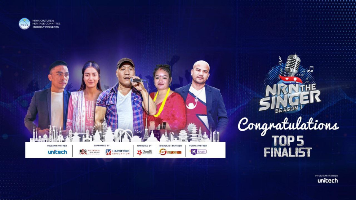 ‘खोजी एउटा उत्कृष्ट प्रवासी नेपाली आवाजको’ मूल ध्येय लिएर सञ्चालन भइरहेको रियलिटी शो ‘एनआरएन द सिङगर’ अन्तिम चरणमा प्रवेश गरेको छ। सोमबार राति स्पेस फोर के टेलिभिजनमार्फत उत्कृष्ट १० जनाको प्रस्तुती पछि फाइनलमा प्रतिस्पर्धा गर्ने ५ जनाको टुंगो लागेको हो। यी ५ जनाले अब अक्टोबर १५ तारिखमा काठमाडौंमा हुने ग्रान्ड फिनालेमा प्रतिस्पर्धा गर्ने छन्। उत्कृष्ट १० बाट कर्मा दोङ तामाङ, विष्णु क्षत्री, सुवासचन्द्र पुनमगर, गुना मगर निसु र युक्ती विमलीले ग्रान्ड फिनालेका लागि स्थान पक्का गरेको कार्यक्रम उत्पादक युनिटेकका सुरज राइले जानकारी दिए। काभ्रे घर भइ जापान बस्ने ३० वर्षीय कर्मा दोङ तामाङ अहिले जापानमा विद्यार्थी भिसामा रहेर काम गरिरहेका छन्। विदेशमा बसेपनि नेपाली गिस संगीतबाट कहिल्यै टाढा नभएका तामाङले फिनालेमा पुग्नका लागि राजु लामाको चर्चित गीत ‘गाउँकी चेली साह्रै नै राम्री फरिया र चोलोमा झनै राम्री’ बोलको गीत प्रस्तुत गरेका थिए। पर्वतमा जन्मिएका विष्णु क्षत्री १५ वर्षदेखि युरोपको नर्वेमा बस्दै आएका छन्। विदेशमा काम गर्दै गर्दा पनि नेपाली गीत संगीतलाई माया गरेका क्षत्रीले त्यहाँ हुने कार्यक्रममा आफ्नो प्रस्तुतीले नेपाली समूदायमा राम्रो छाप छाड्न सफल एनआएन द सिङगरको फाइनलमा पुग्दै आफूलाई फेरि एक पटक अब्बल सावित गरेका छन्। उनले फाइनल पुग्नका लागि रामकृष्ण ढकालको आरोह एल्बमको ‘हिरा काट्ने हिरैमा राखेर’ बोलको गीतलाई सुन्दर ढंगले प्रस्तुत गरेका थिए। भोजपुरमा जन्मिएकी गुना मगर वैदेशिक रोजगारीका लागि कतारको दोहामा रहेकी छिन्। आफ्नो गाउँघर बन पाखालाई सम्झदै कामबाट थोरै फुर्सद हुँदा गीत संगीतका माध्यमबाट आफूलाई विदेशी भूमीमा चिनाउने प्रयास गर्दै गरेकी गुनाले फिनालेमा स्थान बनाउनका लागि इन्डियन आइडल जितेका प्रसान्त तामाङले गोरखा पल्टन चलचित्रका लागि गाएको ‘ज्यान सुहाउन लाको चोली तानसेन बजारैको बोलक’ गीत प्रस्तुत गरिन्। बेलायतमा जन्मिएकी युक्ती विमली नेपाली भाषामा पोख्त नभए पनि सानै उमेरदेखि नेपाली संगीतमा भने रुची राख्थिन्। वेलायतमा हुने विभिन्न नेपाली सांस्कृतिक कार्यक्रमहरुमा प्रस्तुती दिएको युक्ति विमलीले ग्रान्ड फिनालेमा स्थान बनाउन शिशिर योगीको ‘ छाडेर काम सारा एक मानिस खोजी रहेछु’ बोलको चर्चित राष्ट्रिय गीत प्रस्तुत गरेकी थिइन्। रोल्पामा जन्मिएका सुवासचन्द्र पुन मगर परम्परागत सोरठी नाचका गुरु आफ्नै हजुरबुवा र बाबा भएका कारण गीट्ट संगीतमा यिनको रुची बढेको हो। उनी अहिले रोजगारीको शिलसिलामा पोर्चुगलमा रहेका मगरले फिनालेमा स्थान बनाउनका लागि रोहित थापाले गाएको ‘ घर त मेरो यहाँ होइन’ बोलको गीत प्रस्तुत गर