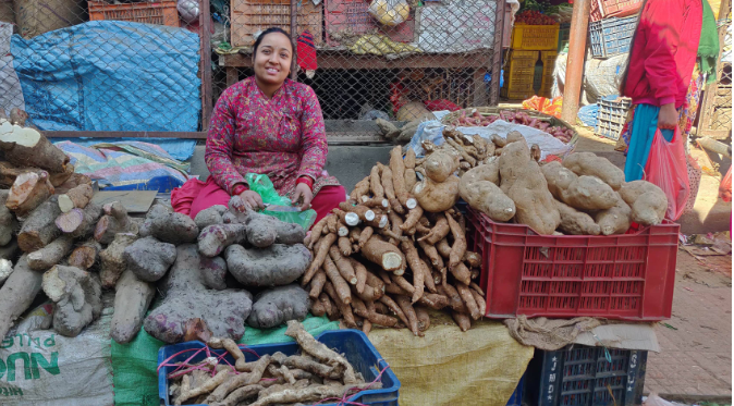 नेपाली किसानले धेरै थरीका तरुल खेती गर्दछन्। जसमध्ये घर तरुल, वन तरुल, हात्तिपाइले तरुल, सिमल तरुल, मुढे तरुल, पत्ताले तरुल अहिले बजारमा बिक्रीका लागि राखिएको देख्न सकिन्छ । माघे सक्रान्तिमा तरुलसँगै पिँडालु, सखरखण्ड पनि खाइन्छ। कालिमाटी फलफूल तथा तरकारी बजार विकास समितिका अनुसार आज तरुल ६० देखि ७० रुपैयाँ प्रतिकेजी, पिँडालु ७० देखि ८० रुपैयाँ प्रतिकेजी र सखरखण्ड ७० देखि ८० रुपैयाँ प्रतिकेजीमा बिक्री भइरहेको छ।