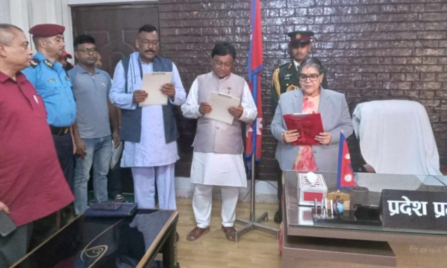 काठमाडाैं । मधेश प्रदेशका नवनियुक्त दुई मन्त्रीले शपथ लिएका छन् ।