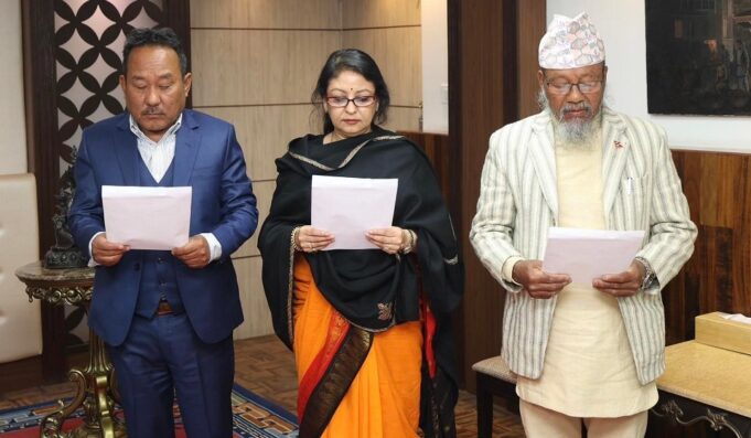 काठमाडौँ – नवनियुक्त तीन जना कुलपतिहरूले पद तथा गोपनीयताको शपथ ग्रहण गरेका छन् । आज बिहान बालुवाटारमा प्रधानमन्त्री पुष्पकमल दाहाल ‘प्रचण्ड’ले नवनियुक्त तीन जना कुलपतिहरूलाई पद तथा गोपनीयताको शपथ गराएका हुन् ।