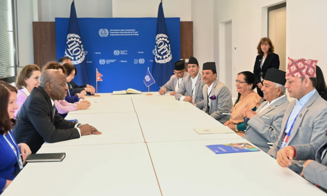 काठमाडौं । राष्ट्रपति रामचन्द्र पौडेल र अन्तर्राष्ट्रिय श्रम संगठनका महानिर्देशक गिलबर्ट एफ हुंग्बोबीच शिष्टाचार भेटवार्ता भएको छ ।