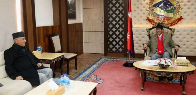 काठमाडौं । प्रधानमन्त्री पुष्पकमल दाहाल र नेकपा एमालेका अध्यक्ष केपी शर्मा ओलीबीच भेटवार्ता भएको छ । उनीहरूबीच बुधबार सिंहदरबारमा भेटवार्ता भएको हो ।