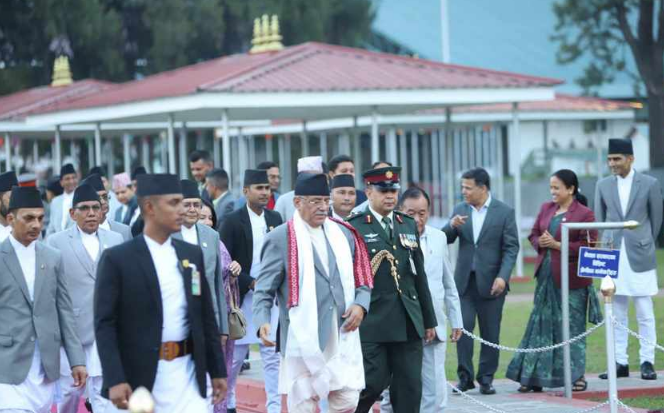 त्रिभुवन अन्तर्राष्ट्रिय विमानस्थलमा रघुवीर महासेठ, नारायणकाजी श्रेष्ठ र रवि लामिछानेलगायत मन्त्री, प्रतिनिधिसभाका सभामुख देवराज घिमिरे र राष्ट्रिय सभाका अध्यक्ष नारायण दाहाललगायतले स्वागत गरेका छन् ।