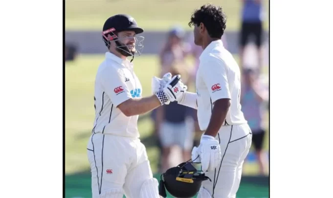 काठमाडौँ । दक्षिण अफ्रिकाविरुद्धको पहिलो टेस्ट क्रिकेटको पहिलो दिन आइतबार घरेलु टोली न्युजिल्यान्डले आफ्नो पहिलो पालीमा दुई विकेट गुमाएर दुई सय ५८ रन बनाएको छ । पहिलो दिन ८६ ओभर खेल भएको थियो । टस हारी पहिले ब्याटिङको निम्तो पाएको न्युजिल्यान्डका लागि केन विलियम्सन र रचिन रविन्द्रले उत्कृष्ट ब्याटिङ गरे । यी दुवै ब्याट्सम्यान शतक बनाउँदै क्रिजमा छन् । केवल ३९ रनमा दुवै ओपनर ब्याट्सम्यानलाई गुमाएको न्युजिल्यान्डको स्कोरलाई त्यसपछि विलियम्सन र रचिनले नै अगाडि बढाएका थिए ।