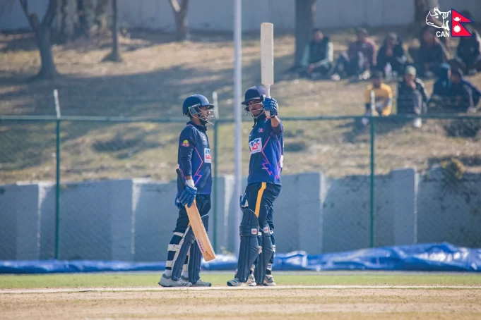 खानले ११२ बलमा १०६ रन बनाउँदै नटआउट रहे । उनले यसक्रममा ९ चौका र ६ छक्का हिर्काए । उनलाई आरिफ शेखले ६६ बलमा ५७ रन बनाउँदै राम्रो साथ दिए ।  कप्तान दीपेन्द्र सिंह ऐरीले १४ बलमा २१ रन बनाए भने सुनिल धमला र अर्जुन साउदले २०–२० रनको योगदान दिए ।