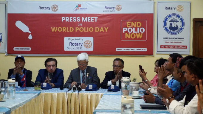 सोमबार काठमाडौंमा पत्रकार सम्मेलनको आयोजना गर्दै रोटरीले वार्षिक रुपमा अक्टोबर २४ लाई पोलियो दिवसका रुपमा मनाउँदै विश्वव्यापी रुपमा जनचेतना फैलाउन विभिन्न गतिविधिहरु गर्दै आइरहेको र यसवर्ष पनि गर्ने जानकारी गराएका छन् ।