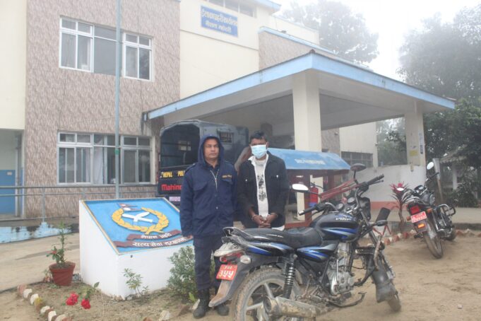 काठमाडौँ । महोत्तरी प्रहरीले मोटरसाइकल चोरी गरेर भाग्दै गर्दा एक जनालाई पक्राउ गरेको छ। पक्राउ पर्नेमा धनुषाको मिथिला नगरपालिका– १ लक्ष्मीबास बस्ने २६ वर्षीय हिरेन्द्र महरा चमार रहेको जिल्ला प्रहरी कार्यालय महोत्तरीले जनाएको छ।